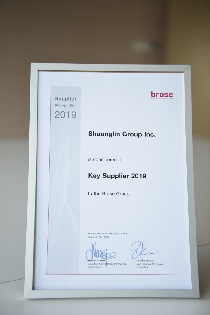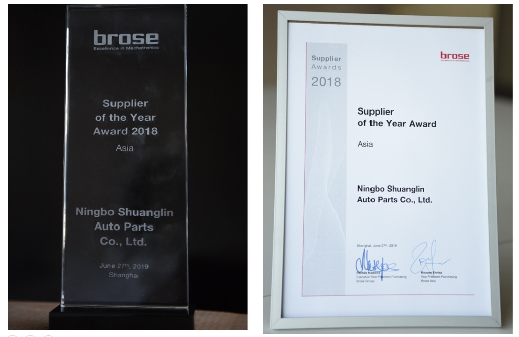在4月举办2019上海车展期间,Brose授予双林股份“年度关键供应商奖”